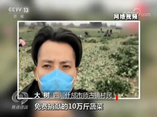 這是什邡市師古鎮(zhèn)的一個農(nóng)村網(wǎng)紅,網(wǎng)名叫大樹哥。疫情發(fā)生以后,他也想為武漢做點什么。他說,自己沒什么錢,但是地里有菜。